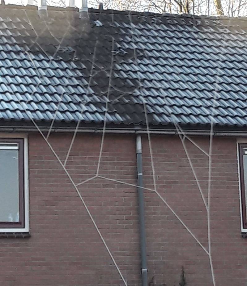 Dan goa ik wieder denken. Zol zon spinne weh wat te etten hem, want vliegen bint der noe tog nie buuten. Of zolle det doene um warm te blieven. Zeg ma un bettie spinnijdig, opgefokt en actief um ut ma nie kold te kriegen. Dan mut ik toegeem datte oarig ziene beste hef e’doane. Nie alleene veur ut raam, ma ok tussen de stuukies zie ik un paar droaden hangen. Of zol de familie bie mekaare zitten, det zol ok nog kunnen.