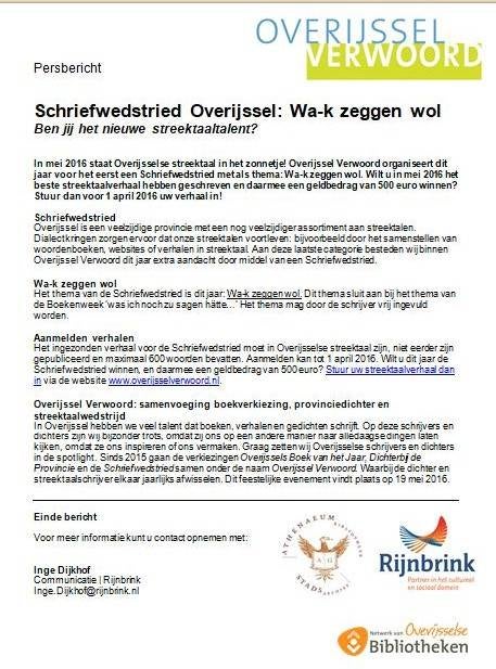 Ik goa der dan ok van uut, dat wie det in Oaveriessel dit zelf allemoal weh kunt. De Sallandse wegenbouw en de Reko kunt de wége weh an leggen. Ut asfalt waj nie meer neudig hebt, kuj tog hergebruuken. Zo bint wie ok nog is gruun bezig.