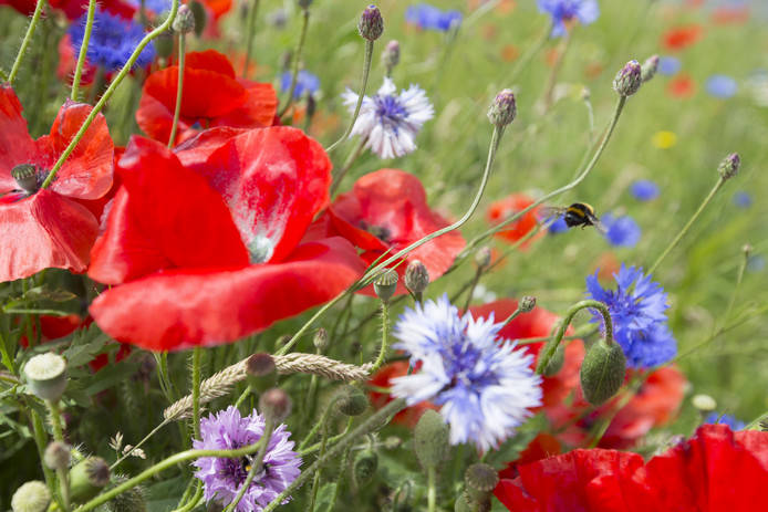 Dit om de bijen populatie in stand te houden. Hiervoor worden al enkele jaren groenstroken ingezaaid met zaad voor wilde bloemen. Deze stroken worden dan ook zo laat mogelijk gemaaid door de gemeente. Het geeft een fleurige blik als je hierlangs loopt of fietst. Je wordt ook nog eens vrolijk van die zoemende bezige bijtjes.